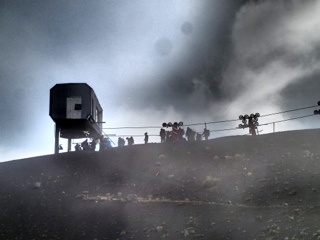 It is a very murky morning, drizzling rain and total cloud cover, we're not sure if the trek will be on. Equipment checked we start the climb which usually lasts for about 4 to 5 hours, but could terminate at any time. Our first bit of good news is that the lower section chair lift is working so we can save about 45 mins, but the weather is not looking good, they haven't been up for the last two days. Geoff and I get the chairlift and are whisked away into the murkiness. Ten minutes later we are at the foot of Villerrica. Crampons and mittens donned we start the slow steady ascent. We get into a nice rhythm, seems endless but we make good progress. All of a sudden after a couple of hours we pop out above the clouds into clear blue sky's and bright sunshine, amazing. We dig snow seats, rucksacks in and sit on them ready for a drink and a sandwich. We are half way, the scenery fantastic but starting to get cold and eager to move on. It is very beautiful but eerily so, deathly quiet with the occasional ice cold wind coming at you from all angles. We plod on, one behind the other specks on the volcano side. The steps are getting smaller, breaks more frequent but the knowledgeable guides are urging you on. A fair percentage of the trekkers drop out along the way. We hit the final section which is particularly steep and the snow has an ice cover making it harder to keep your footing. The wind gets up again, you dig in every step but now we are within 45 mins of the summit. The pace increases and I get a second wind immediately behind the guide. As we approach we get a whiff of sulphur as the volcano belches out some smoky steam. We arrive at the lip of the crater, we've made it. The view is utterly astonishing as the clouds play hide and seek with the forests and lakes below. It is quite an emotional moment for us all achieving this goal. Back packs off we get as close as we dare to the craters edge. A particular large dust cloud fires out to whoops of laughter........What's funny!